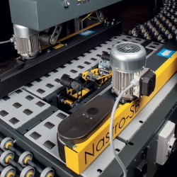 It is used for long production runs with same boxes dimension. The machine applies automatically two self-adhesive tape stripes on the upper and lower boxes middle line.